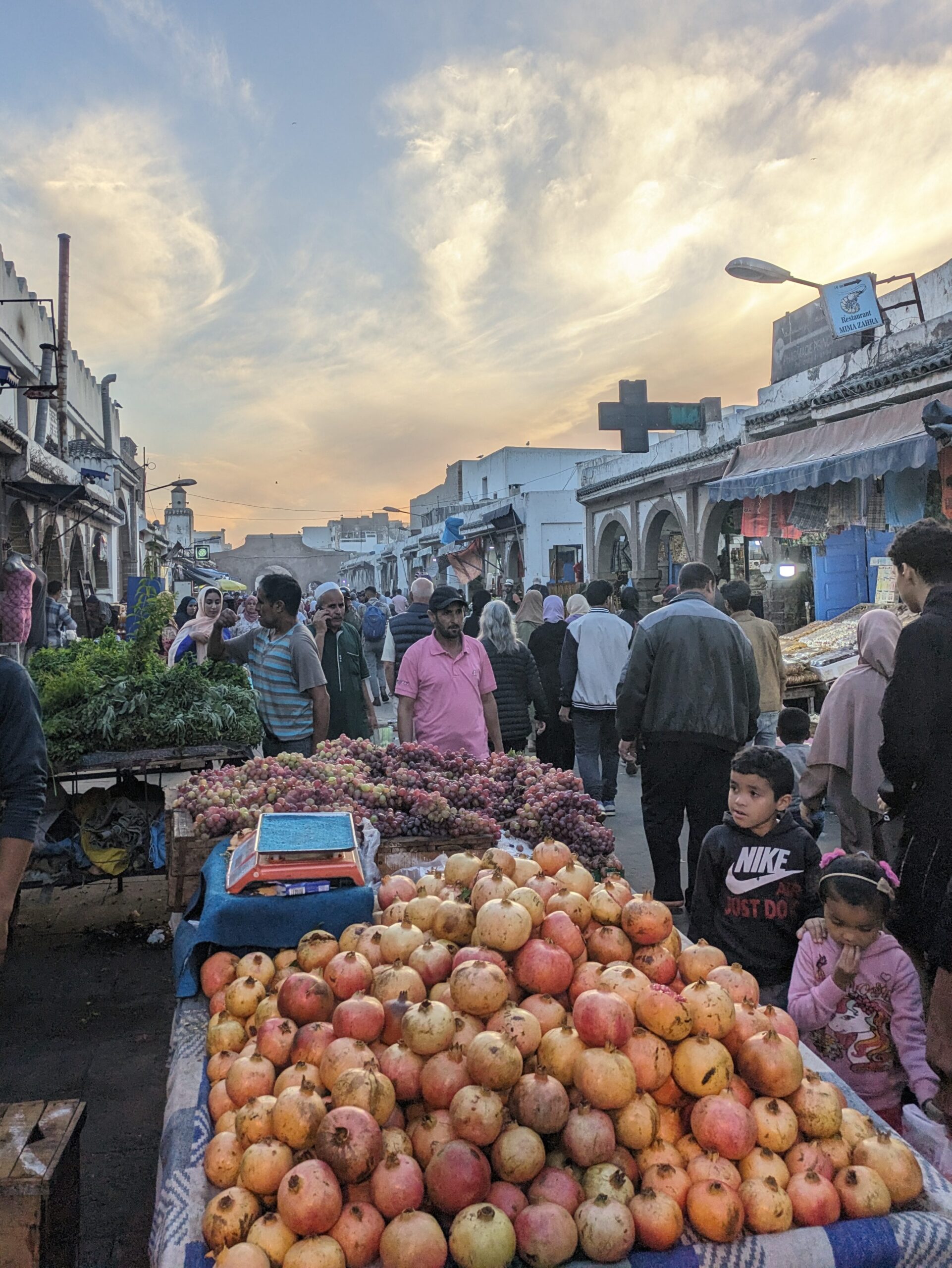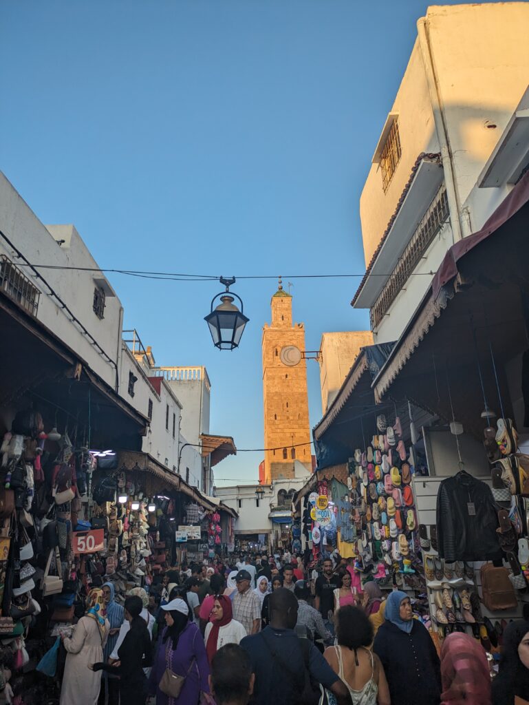 Still cramping in pain, I stayed bed-bound all morning. There’s nothing quite as grim as grinding through an illness stuck alone in a small bunk of a 12-person hostel dorm, and for the first time in Morocco I really missed having a companion to help get me through it. Running out of liquids and still sweating buckets, I forced myself to get out of bed and unsteadily venture into the street to buy more water and orange juice. Every additional few seconds I was outside and standing upright, I felt myself getting fainter and dizzier, and with a bottle of water secured I started stumbling back towards the hostel.
