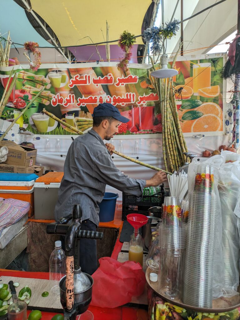 Taking a rest day in Agadir to explore the famous Souk market, I stumbled across the best sugar cane juice I have ever tasted.  This was truly one of the most exquisite liquids that has ever entered my body. Nectar of the Gods. I simply couldn’t stop drinking it. A whole sugar cane, ginger root and fresh lime, squeezed straight into a bottle for me to take away. It may have been 1L and approximately one million calories, but it barely lasted 10 minutes.