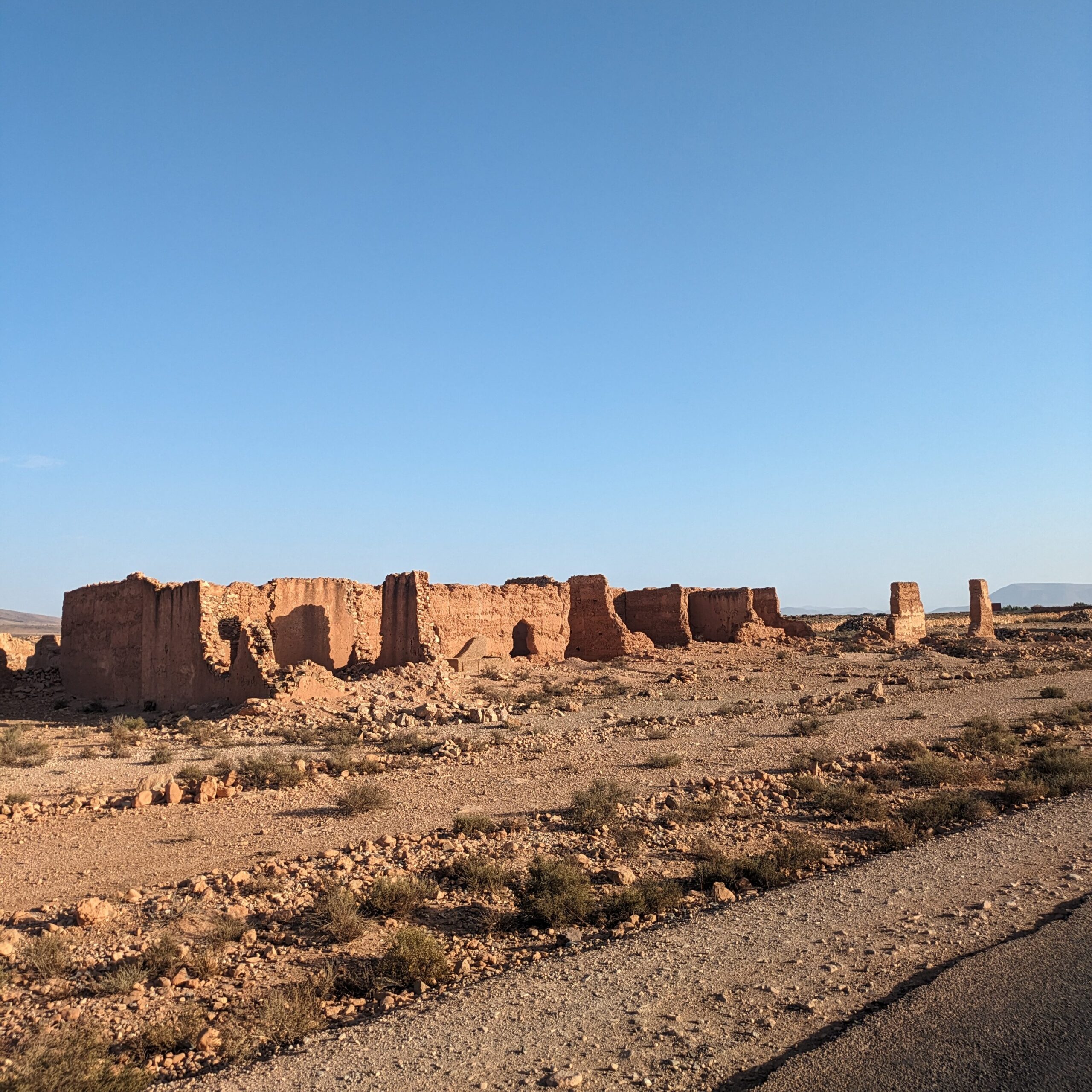 Back in the saddle the next morning, I was relieved to have a relatively uneventful day. Long stretches of straight rural roads were a welcome change from the chaos of Tangier, and with the crazy sidewinds dissipated I was able to make good progress South. While I had initially planned a quieter and more scenic route winding through the Atlas mountains, mere weeks before I arrived Morocco experienced a horrific earthquake, splitting great cracks across the mountain roads.